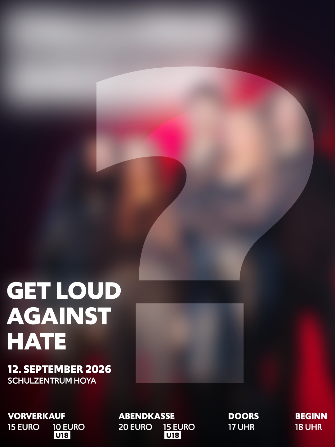 Unser Line-up ist komplett! Ab jetzt veröffentlichen wir nach und nach alle fünf Bands - jeweils immer zunächst mit einem kleinen Rätsel. Los geht´s mit einer regionalen Nachwuchsband, die das Get Loud Against Hate 2026 eröffnen wird.